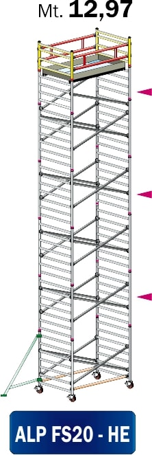 FRIGERIO CARPENTERIE - Ponteggio alluminio professionale 200x135 con 1 piano e staffe di montaggio M12 e 97.
