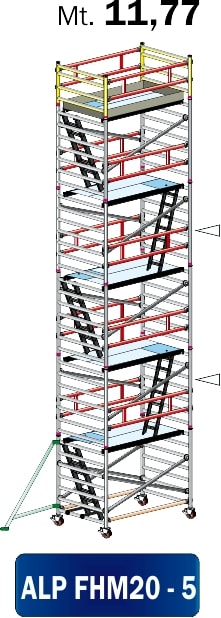 FRIGERIO CARPENTERIE - Ponteggio alluminio professionale 200x135 con 5 piattaforme, stabilizzatori e scale ENM11,77.