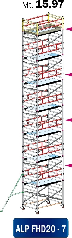 FRIGERIO CARPENTERIE - Ponteggio alluminio professionale 200x135 con 7 piani e staffe in metallo 15,97.