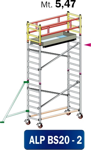 FRIGERIO CARPENTERIE - Ponteggio alluminio professionale 200x74 con 1 piano e staffe di montaggio M5,47.