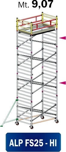FRIGERIO CARPENTERIE - Ponteggio alluminio professionale 255x135 con 1 piano e staffe di montaggio M9,07.