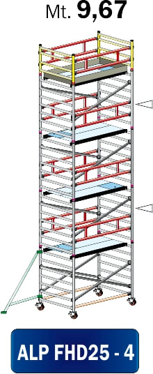 FRIGERIO CARPENTERIE - Ponteggio alluminio professionale 255x135 con 4 piani e stazionamento in M09,67.