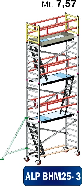FRIGERIO CARPENTERIE - Ponteggio alluminio professionale 255x74 con 3 piani, stazionario, scala inclusa ENM7,57.