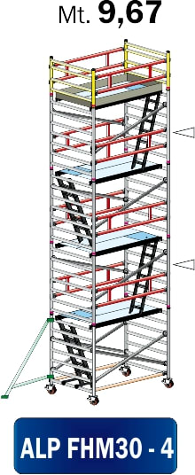 FRIGERIO CARPENTERIE - Ponteggio alluminio professionale 310x135 con 4 piattaforme stabilizzanti e scala inclusa ENM09,67.