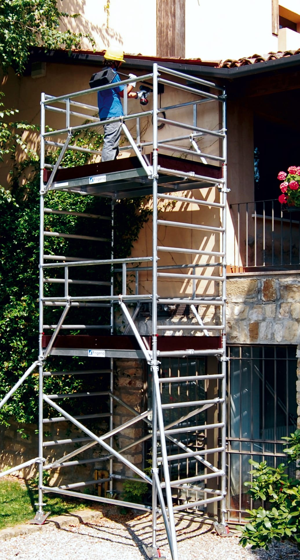 FRIGERIO CARPENTERIE - Ponteggio alluminio professionale autoportante 255x135 con 6 piattaforme e stabilizzatori ENM13,87.