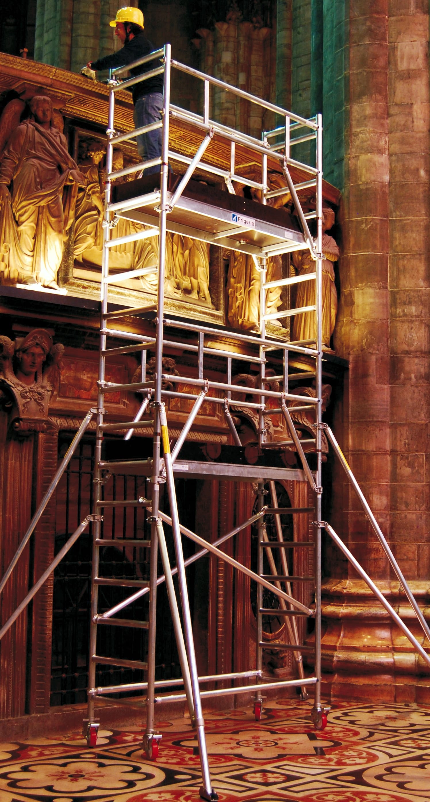 FRIGERIO CARPENTERIE - Ponteggio alluminio professionale autoportante 255x74 con 1 piano in lamiera di acciaio zincato spessore 3,37mm.