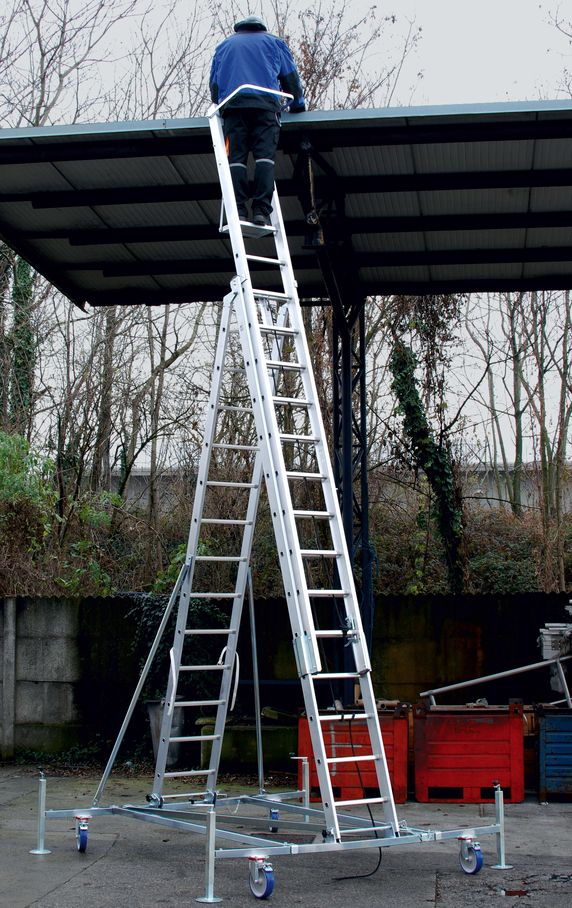 FRIGERIO CARPENTERIE - Scala aerea 3pz con base, livello e pianeta 12+12 gradini.