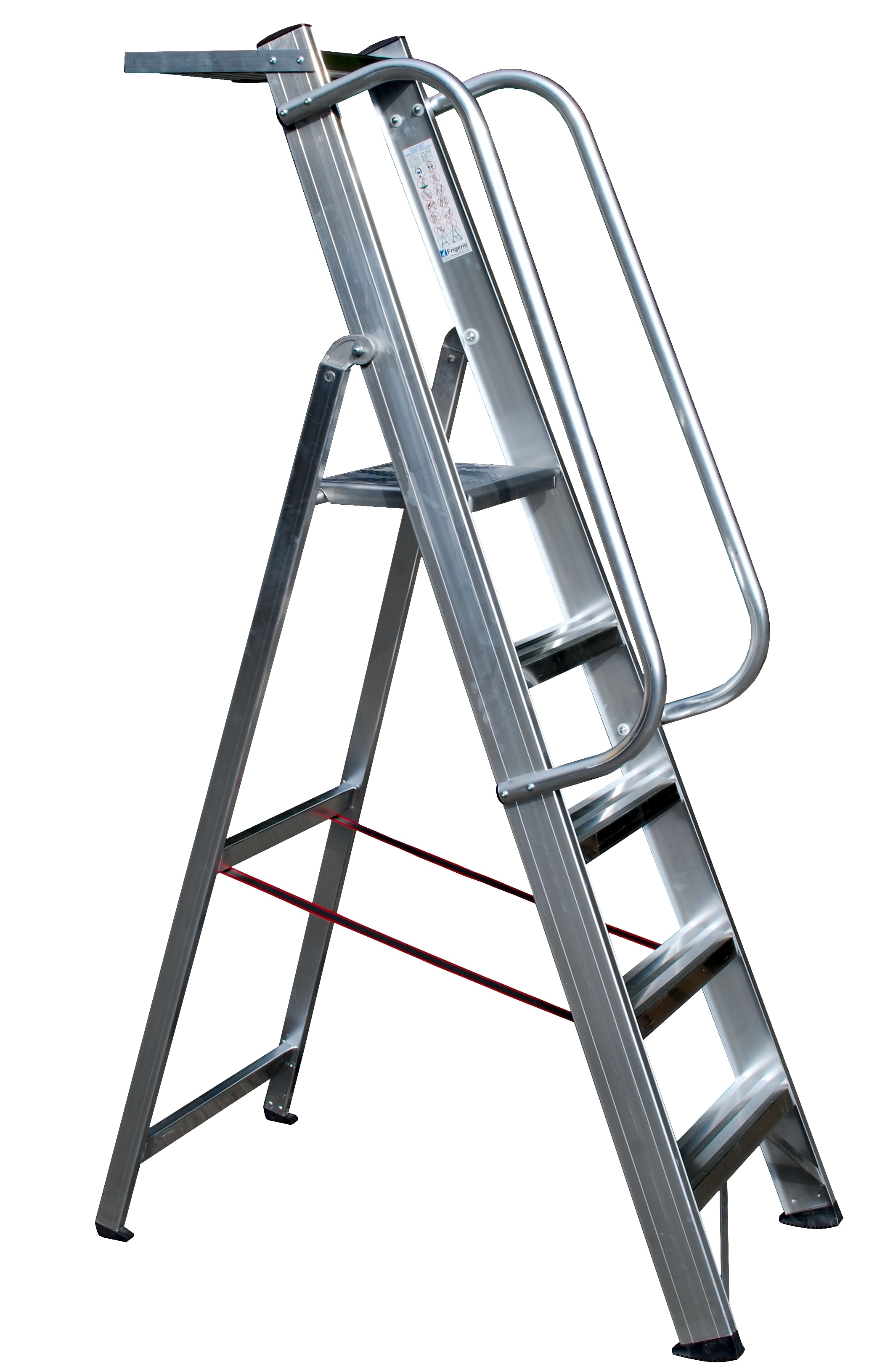 FRIGERIO CARPENTERIE - Scala cavalcabile professionale con piattaforma, parapetto, vaschetta e accessori inclusi.