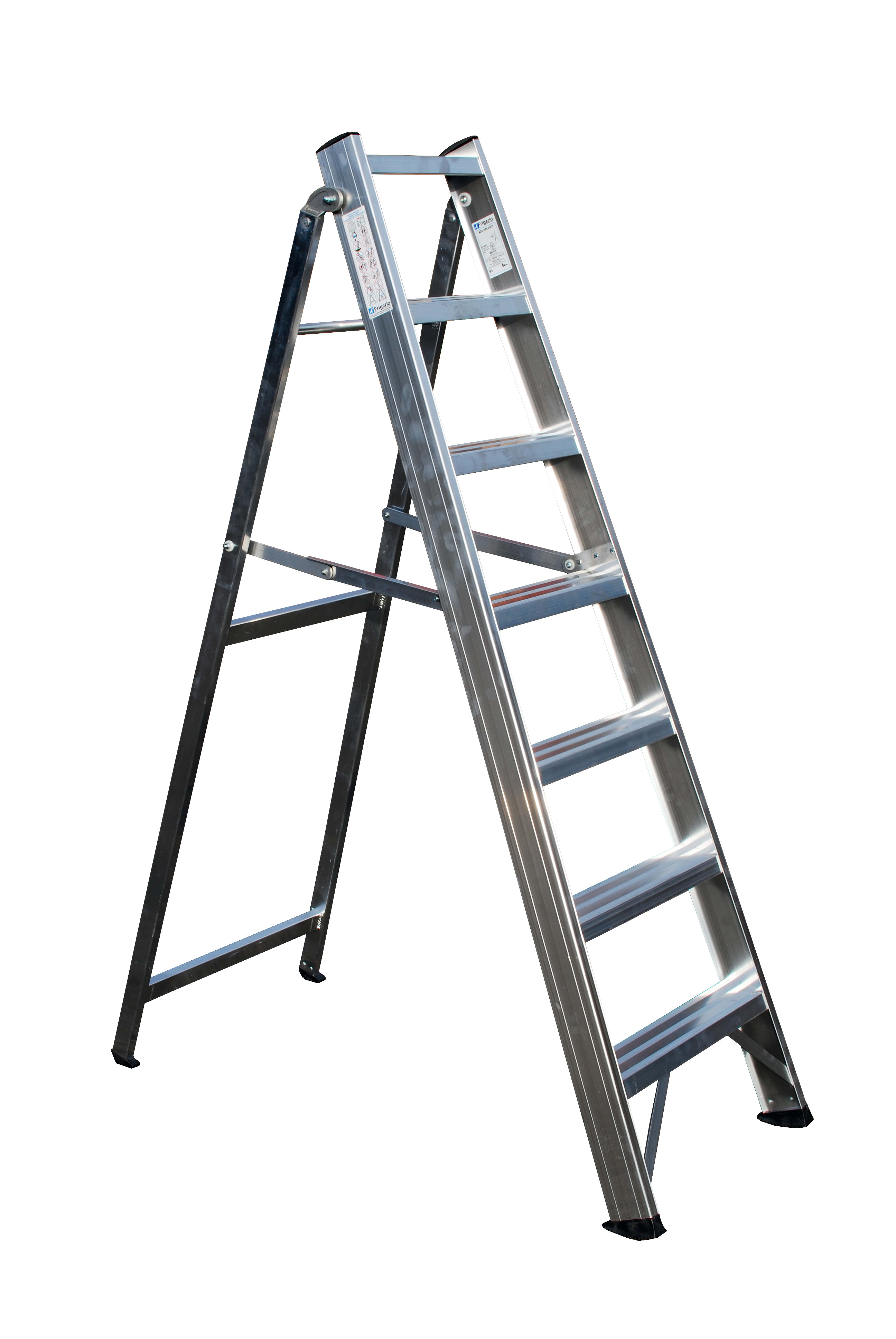 SCALA PROFESSIONALE A CAVALLETTO A GRADINO LARGO - GRADINI n? 2x7 - LUNGHEZZA mt 1,78 - ALTEZZA CAVALLETTO IN USO mt 1,62 - CERTIFICATA A NORMA EUROPEA EN131-1/2 - DOTATA DI: GRADINI LARGHI mm 83 UNITI AI PROFILI MONTANTI CON ROBUSTA SALDATURA AD ANGOLO NASCOSTA ALLA VISTA, BASE ANTI-URTO CON NERVATURE DI RINFORZO IN ALLUMINIO SALDATE ANTI-RUGGINE, CERNIERE SOSTEGNO CAVALLETTO IN FUSIONE DI ALLUMINIO ANTI-RUGGINE, n?2 BARRE DISTANZIARICI AUTOMATICHE DI SICUREZZA IN ALLUMINIO ANTI-RUGGINE ANTI-APERTURA E ANTI-CHIUSURA, ROBUSTA VASCHETTA PORTA-OGGETTI IN ALLUMINIO SALDATA DI DIMENSIONI cm 8x30 PROFONDA 4 cm