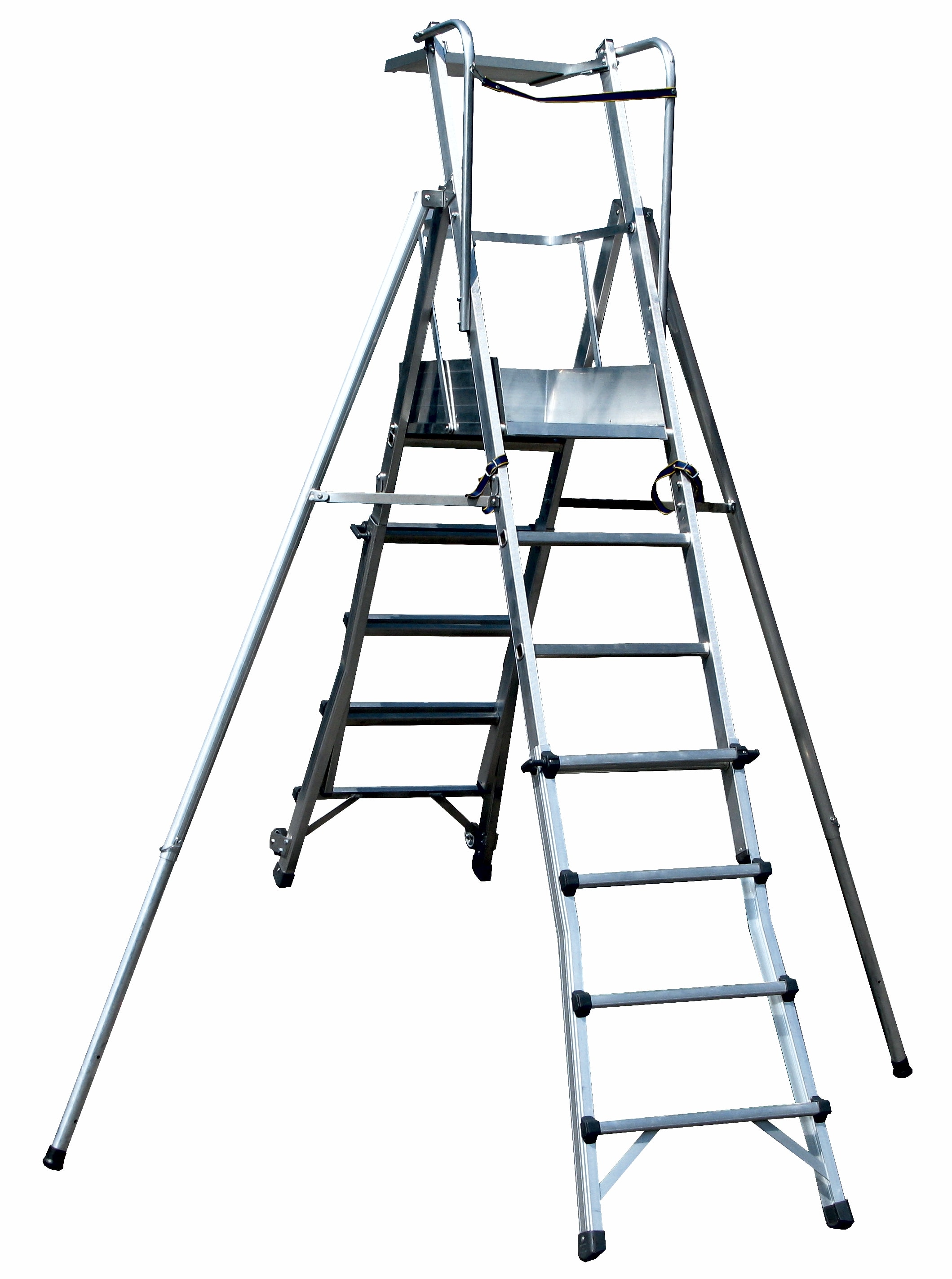 SCALA PROFESSIONALE A PALCHETTO ALLUNGABILE CON SFILO TELESCOPICO CON PIATTAFORMA DI LAVORO REGOLAMENTARE - PIOLI n?4+5 - ALTEZZA MASSIMA PIATTAFORMA mt 1,48 - CERTIFICATA A NORMA EUROPEA EN131-7 ANTI-RIBALTAMENTO - DOTATA DI: PIOLI ESTERNI IN PROFILO ESTRUSO RINFOZATO mm30X30 CON SALDATURA SUPER RESISTENTE SU SPESSORI MAGGIORATI 4 mm E PIOLI INTERNI mm30X30 FISSATI AL MONTANTE CON DOPPIA BORDATURA INTERNA ED ESTERNA, DISPOSITIVO ARRESTO TRONCHI IN ACCIAIO RIVESTITO IN NYLON, TAPPI DI PROTEZIONE GRADINI REALIZZATI A DOPPIO INCASTRO ANTI-DISTACCO, VASCHETTA PORTA-OGGETTI RIBALTABILE, STAFFE STABILIZZATRICI ANTI-RIBALTAMENTO TELESCOPICHE AD APERTURA RAPIDA