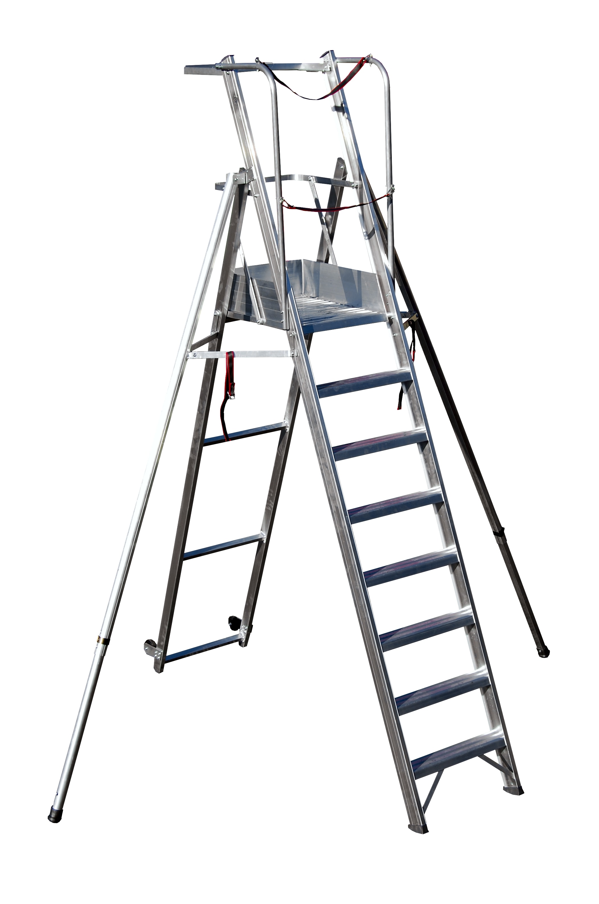 SCALA PROFESSIONALE A PALCHETTO PIEGHEVOLE ANTI-RIBALTAMENTO COMPATTA CON PIATTAFORMA LAVORO E PARAPETTO REGOLAMENTARI E CAVALLETTO DI SOSTEGNO INCLINATO - GRADINI n?8 - LUNGHEZZA mt 2,83 - ALTEZZA PIATTAFORMA IN USO mt 1,85 - VERSIONE CERTIFICATA A NORMA EUROPEA EN131-7 ANTI-RIBALTAMENTO CON STAFFE STABILIZZATRICI LATERALI DOTATA DI: GRADINI LARGHI mm 83 UNITI AI PROFILI MONTANTI CON ROBUSTA SALDATURA AD ANGOLO NASCOSTA ALLA VISTA, VASCHETTA PORTA-OGGETTI IN ALLUMINIO RIBALTABILE DI DIMENSIONI cm 20x55, PARAPETTO REGOLAMENTARE ALTO mt 1,00, PIATTAFORMA IN ALLUMINIO DIMENSIONI mm 220x450 AD APERTURA AUTOMATICA, CORRIMANO SU ENTRAMBI I LATI, BASE ANTI-URTO CON NERVATURE DI RINFORZO IN ALLUMINIO SALDATE ANTI-RUGGINE, CAVALLETTO DI SOSTEGNO CON n?2 RUOTE 125 mm PER SPOSTAMENTO A CARRIOLA, STAFFE STABILIZZATRICI LATERALI AD APERTURA RAPIDA CON SFILO TELESCOPICO E STAFFE DI BOCCAGGIO IN ALLUMINO ANTI-RUGGINE