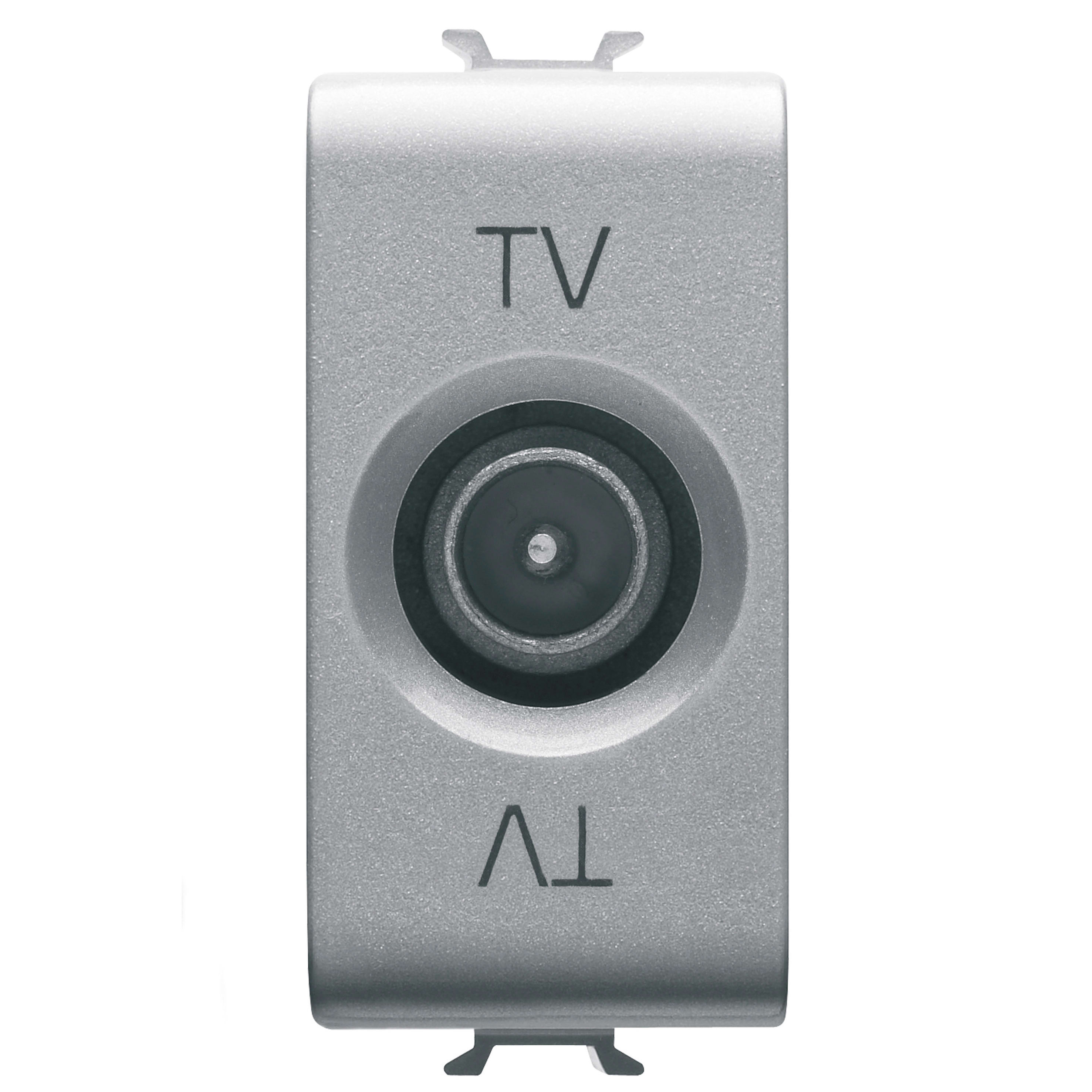 GEWISS - PRESA COASSIALE TV SCHERMATURA CLASSE A - CONNETTORE IEC MASCHIO 9,5mm - PASSANTE 10 dB - 1 MODULO - TITANIO - CHORUSMART GW14363