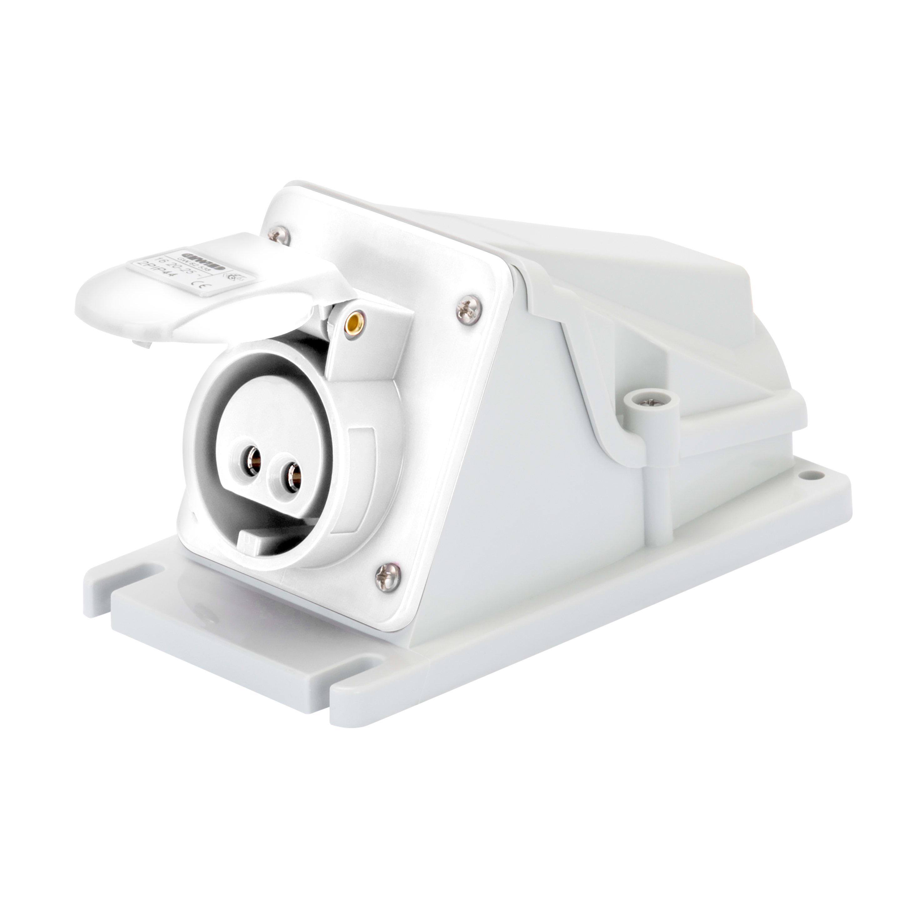 GEWISS - PRESA FISSA DA PARETE A 90° - IP44 - 2P 16A 40-50V 50-60HZ - BIANCO - 12H - CABLAGGIO A VITE GW62540