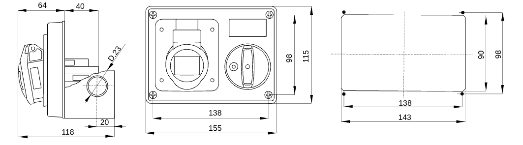 GEWISS - PRESA FISSA INTERBLOCCATA ORIZZONTALE - CON FONDO - SENZA BASE PORTAFUSIBILI - 3P+N+T 32A 480-500V - 50/60HZ 7H - IP44