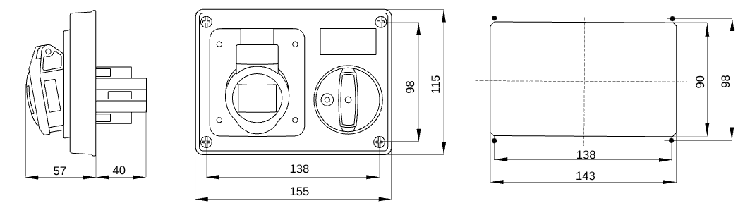 GEWISS - PRESA FISSA INTERBLOCCATA ORIZZONTALE - SENZA FONDO - SENZA BASE PORTAFUSIBILIA - 3P+N+T 16A 100-130V - 50/60HZ 4H - IP44