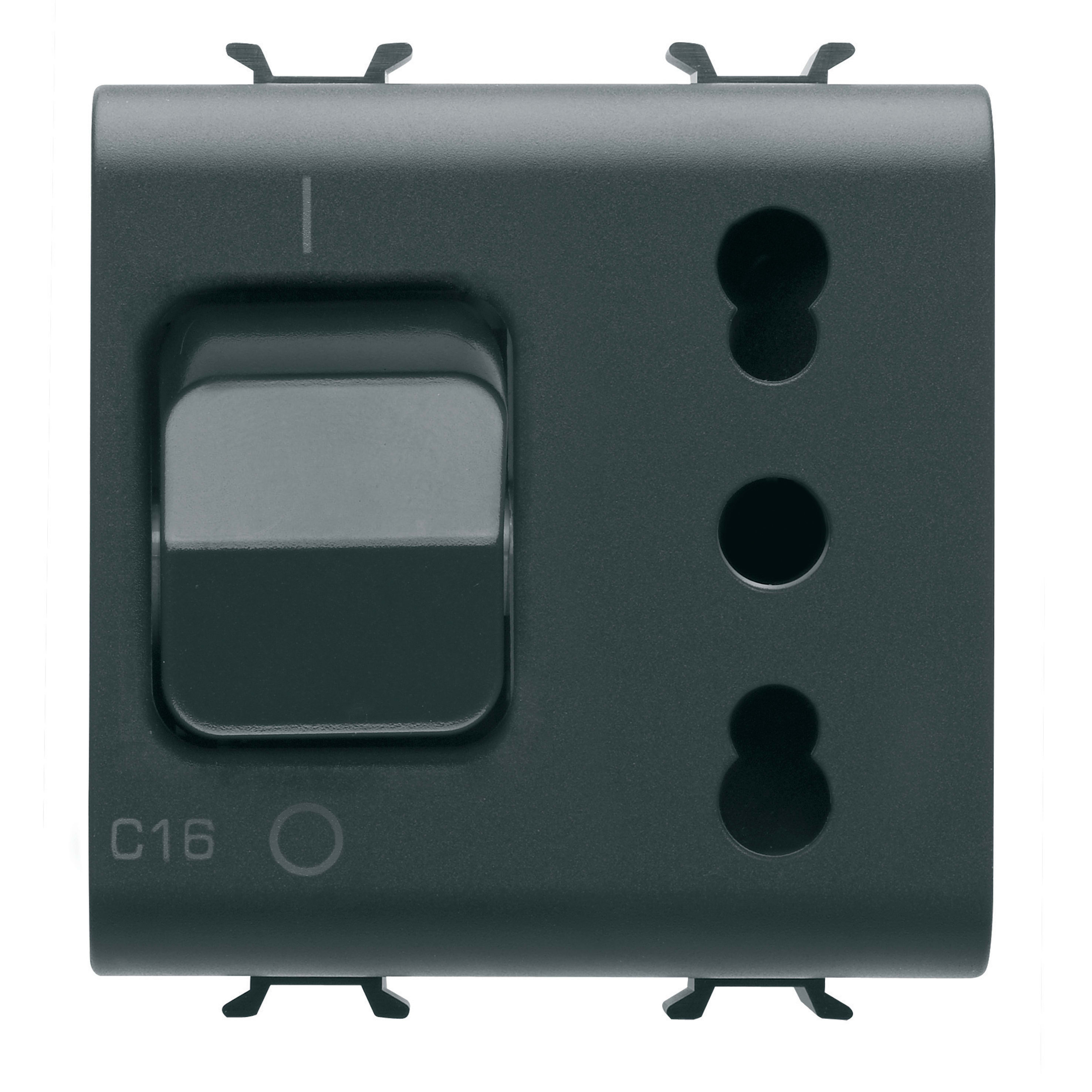 GEWISS - PRESA INTERBLOCCATA - 2P+T 16A - P17-P11 - CON INTERRUTTORE MAGNETOTERMICO 1P+N 16A - 230V ac - 2 MODULI - NERO SATINATO - CHORUSMART GW12311