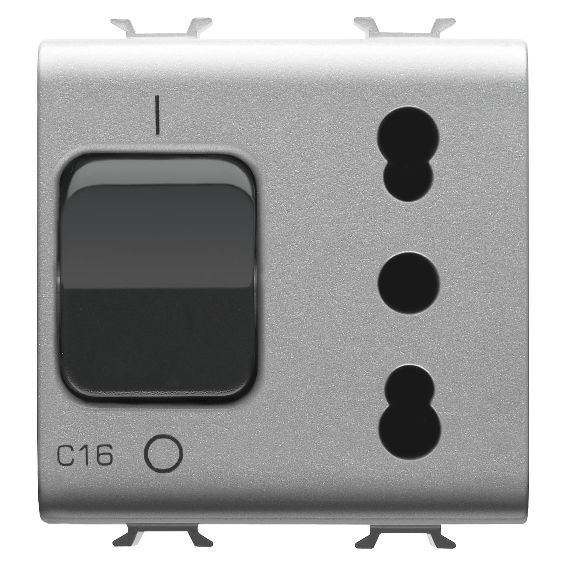 GEWISS - PRESA INTERBLOCCATA - 2P+T 16A - P17-P11 - CON INTERRUTTORE MAGNETOTERMICO 1P+N 16A - 230V ac - 2 MODULI - TITANIO - CHORUSMART GW14311