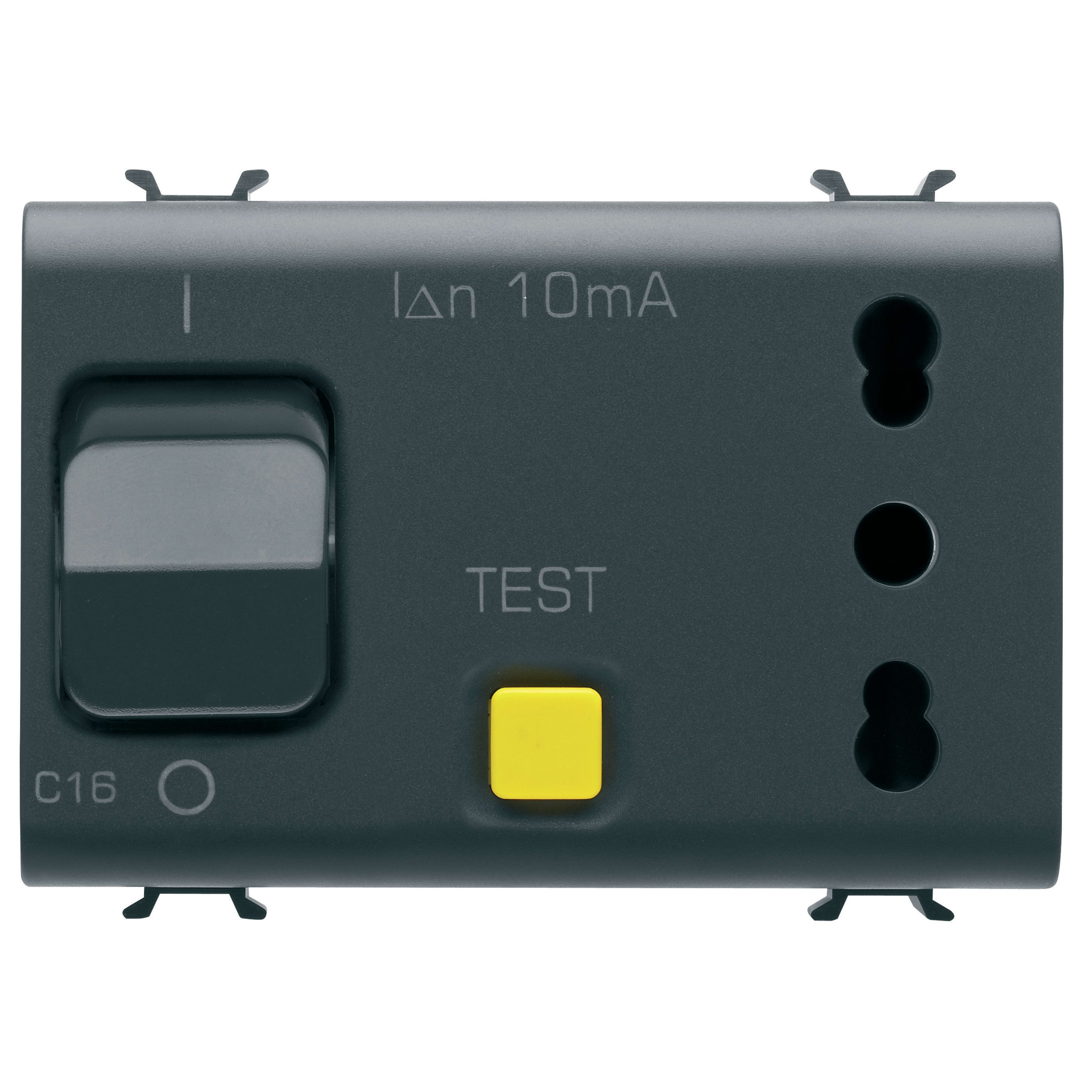 GEWISS - PRESA INTERBLOCCATA - 2P+T 16A - P17-P11 - CON INTERRUTTORE MAGNETOTERMICO DIFFERENZIALE 1P+N 16A - 230V ac - 3 MODULI - NERO SATINATO - CHORUSMART