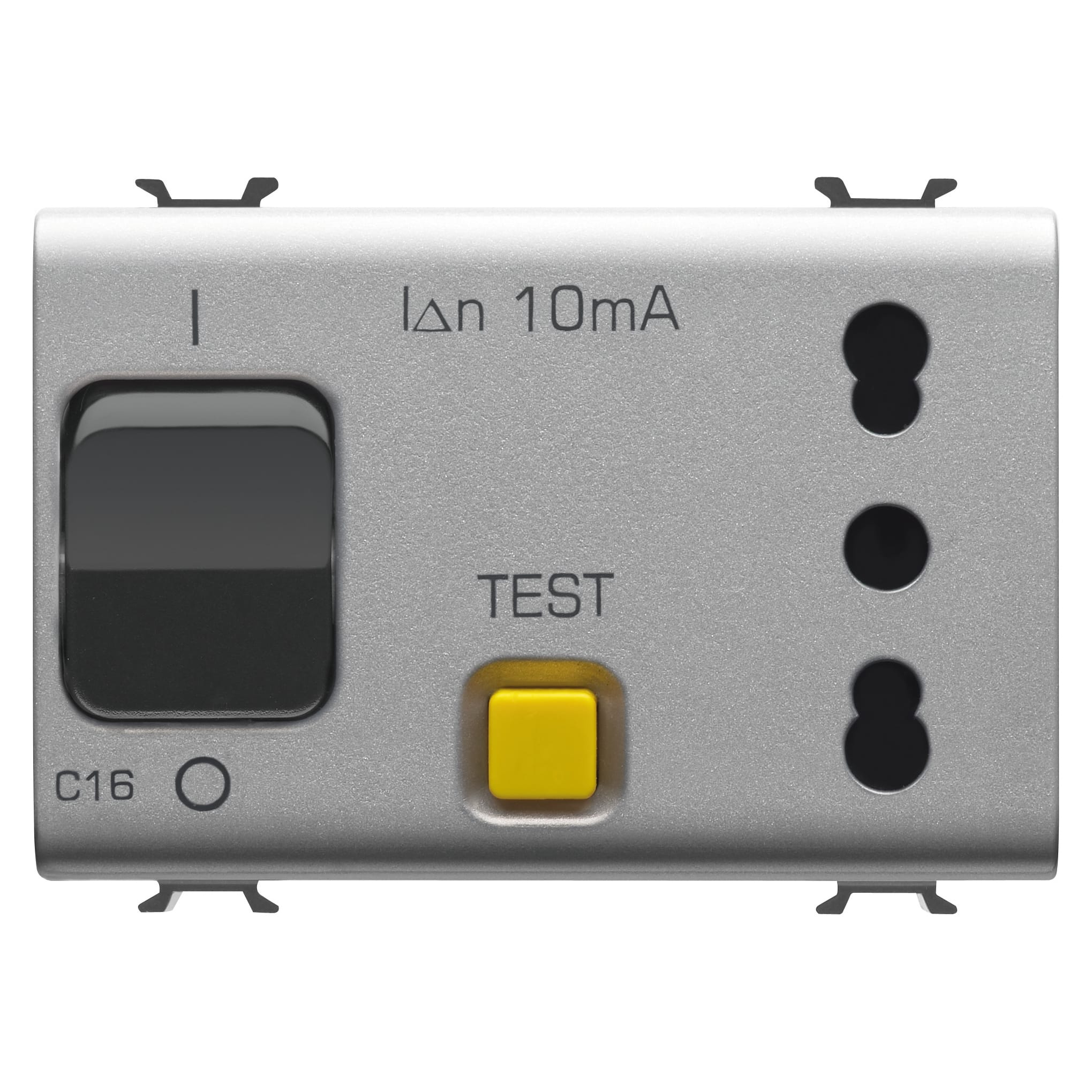 GEWISS - PRESA INTERBLOCCATA - 2P+T 16A - P17-P11 - CON INTERRUTTORE MAGNETOTERMICO DIFFERENZIALE 1P+N 16A - 230V ac - 3 MODULI - TITANIO - CHORUSMART GW14321
