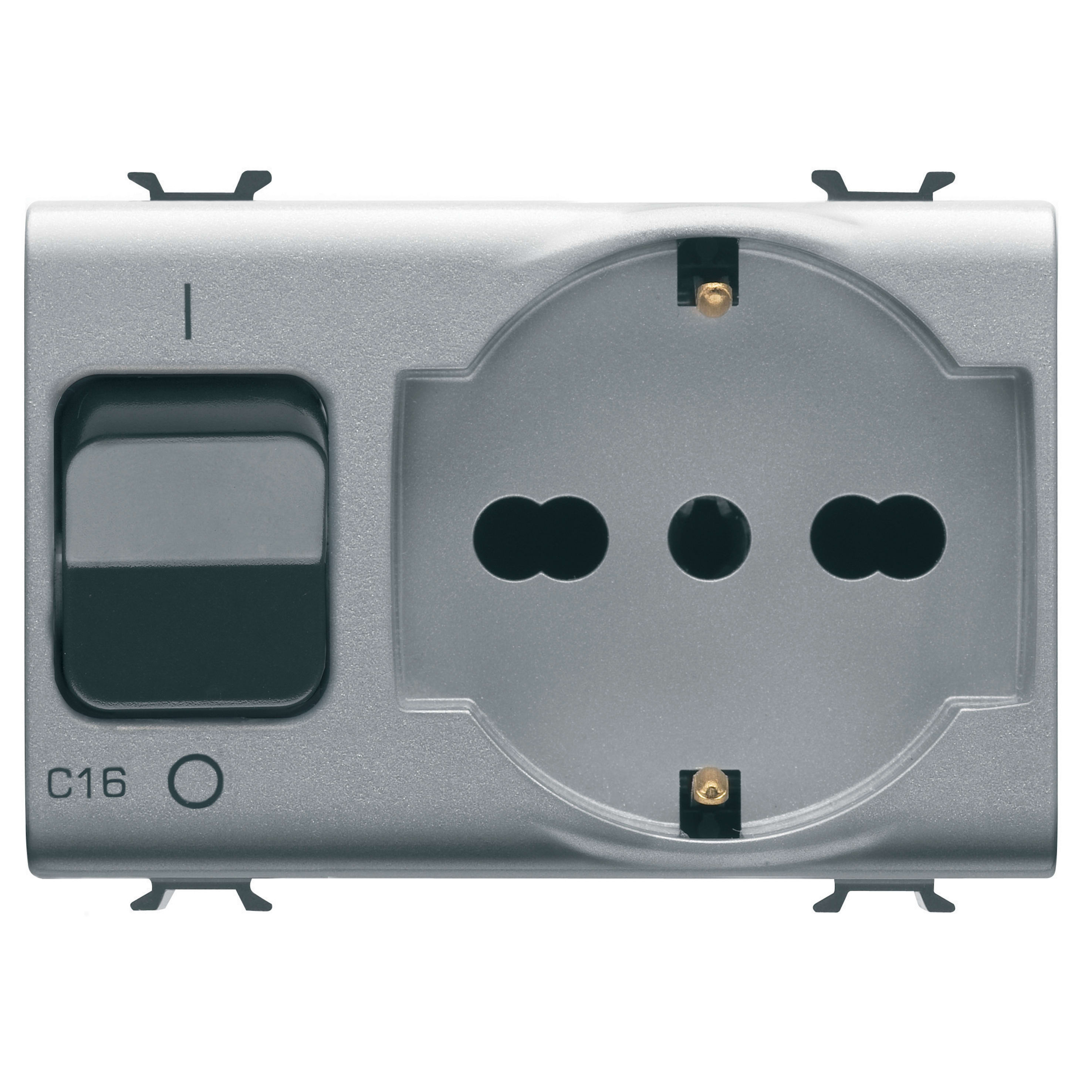 GEWISS - PRESA INTERBLOCCATA - 2P+T 16A - P40 - CON INTERRUTTORE MAGNETOTERMICO 1P+N 16A - 230V ac - 3 MODULI - TITANIO - CHORUSMART GW14312