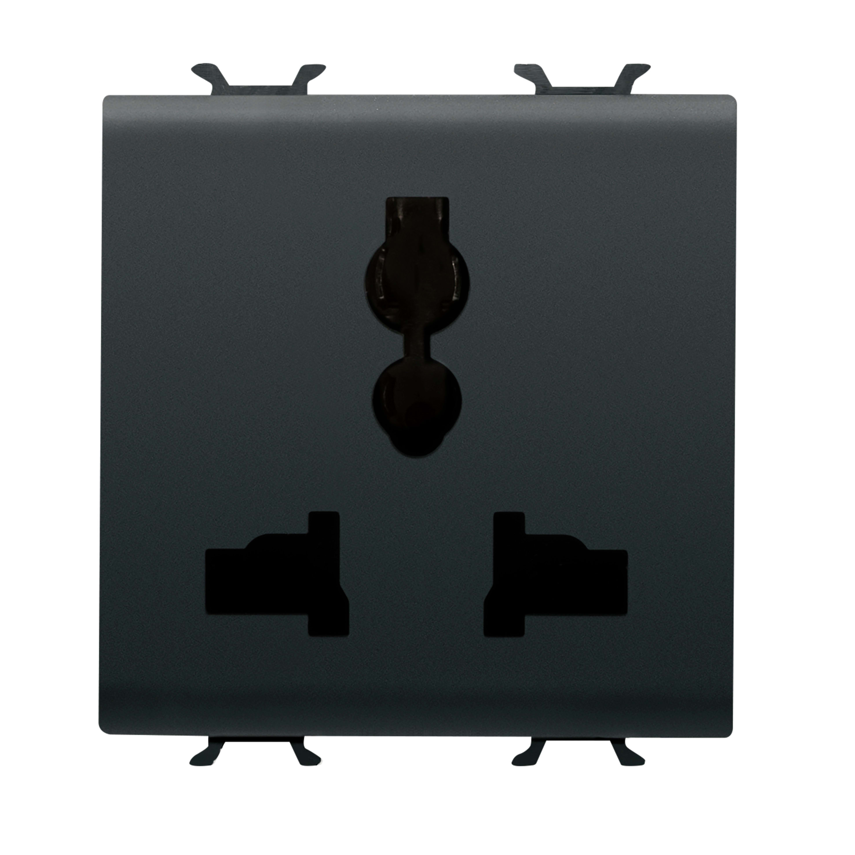 GEWISS - PRESA MULTISTANDARD 2P+T - 13 A/250 V ac - 15 A/127 V ac - 2 MODULI - NERO SATINATO - CHORUSMART GW12310