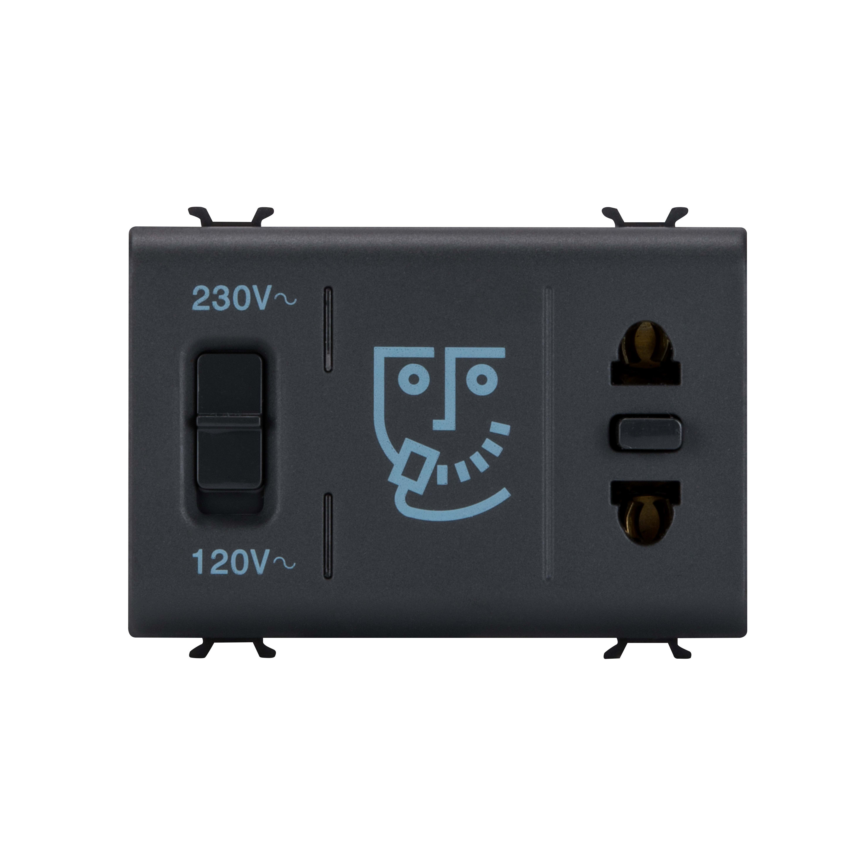 GEWISS - PRESA PER RASOIO STANDARD EUROAMERICANO CON TRASFORMATORE DI ISOLAMENTO - 230V ac - 50/60 Hz - 3 MODULI - NERO SATINATO - CHORUSMART GW12331