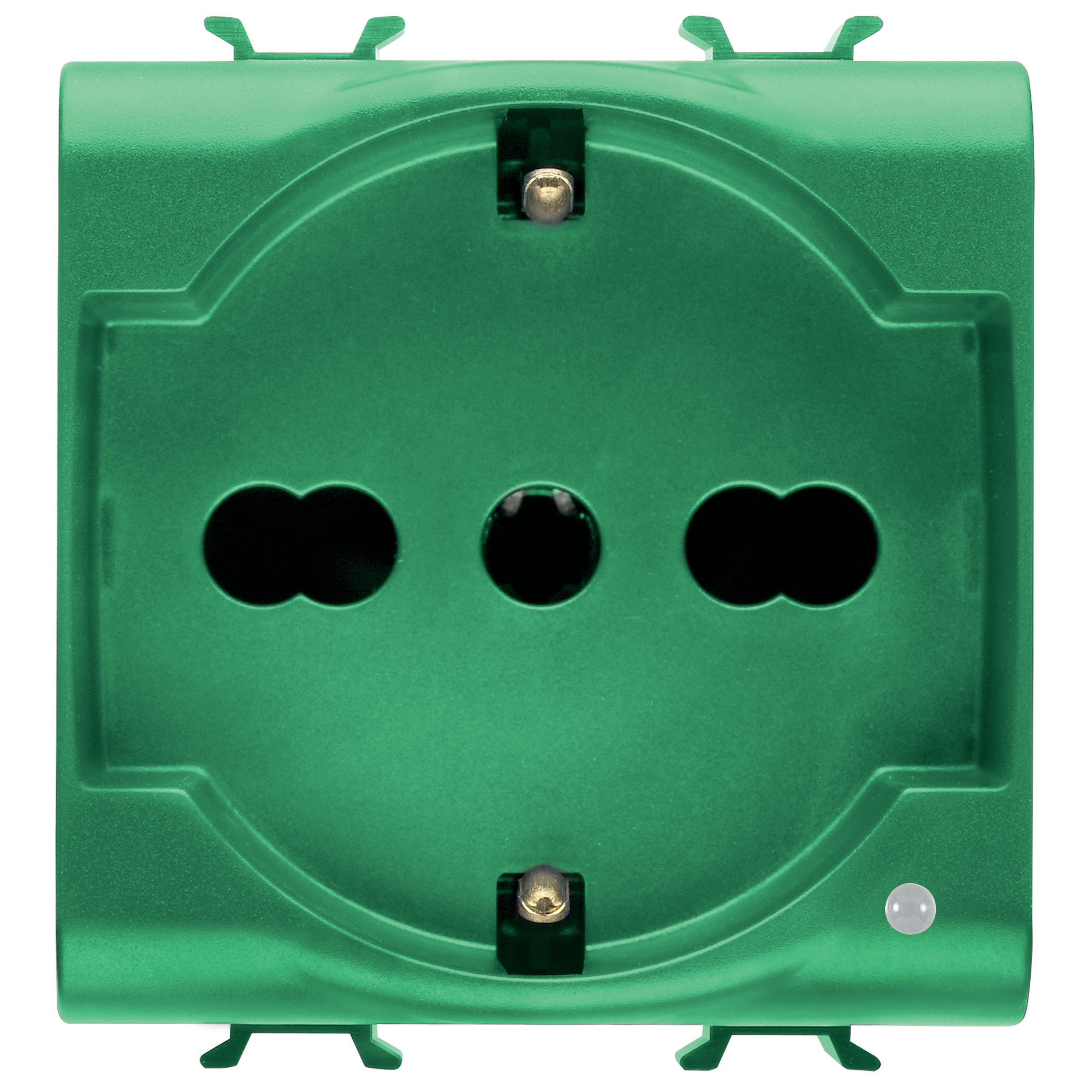 GEWISS - PRESA STANDARD ITALIANO/TEDESCO 250V ac - PER LINEE DEDICATE - 2P+T 16A BIVALENTE - P30-P17 - 2 MODULI - VERDE - ANTIBATTERICO - CHORUSMART GW10224AB