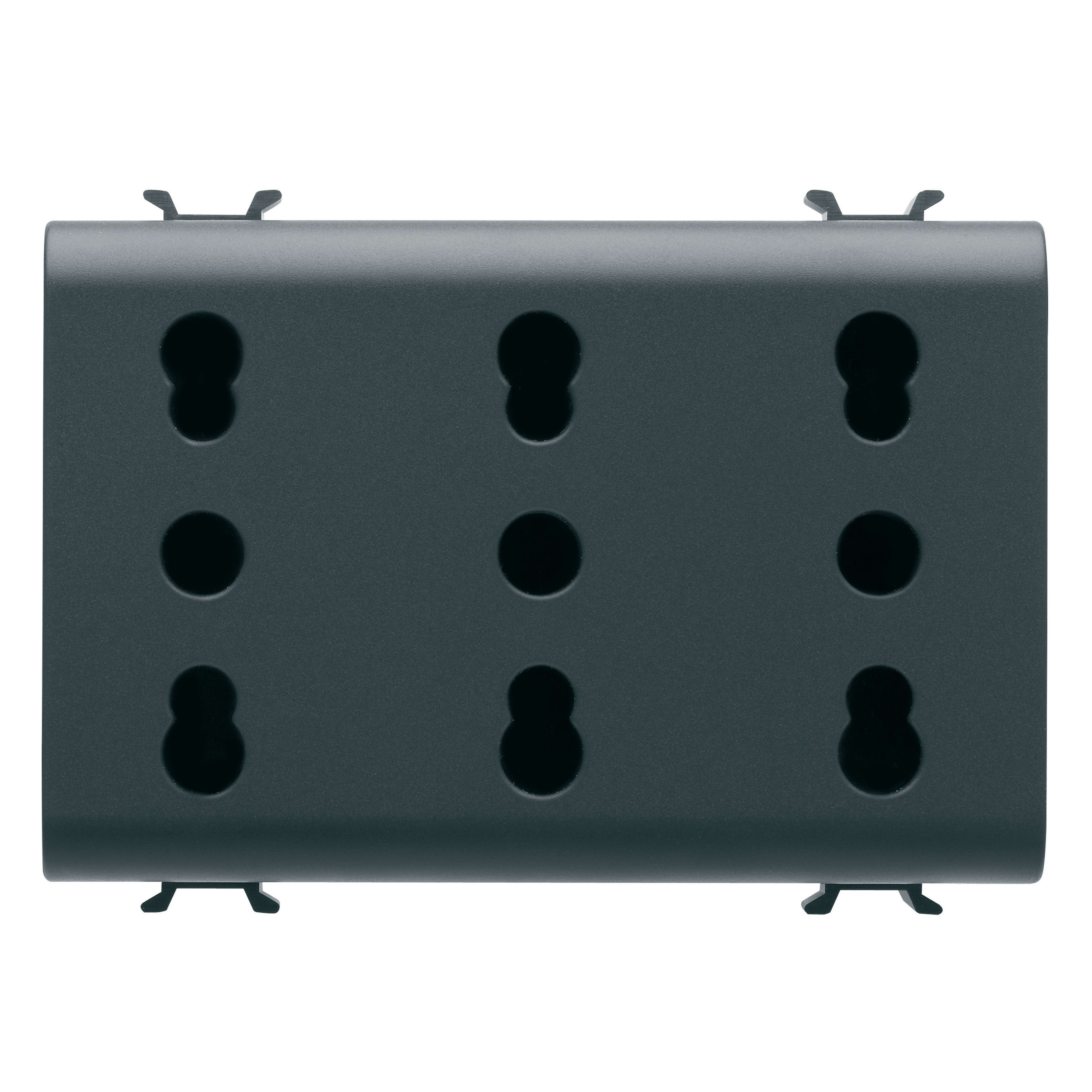 GEWISS - PRESA TRIPLA STANDARD ITALIANO 250V ac - 3X2P+T 16A BIVALENTE - P11-P17 - 3 MODULI - NERO SATINATO - CHORUSMART