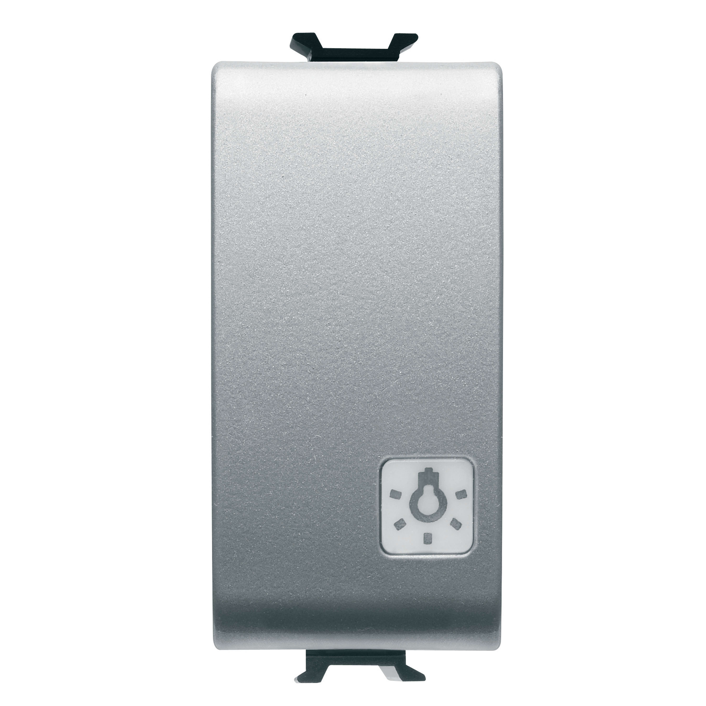 GEWISS - PULSANTE UNIPOLARE 250V ac - NA 16A ILLUMINABILE - CON LENTE NEUTRA SOSTITUIBILE -SIMBOLO LUCE - 1 MODULO - TITANIO - CHORUSMART GW14151
