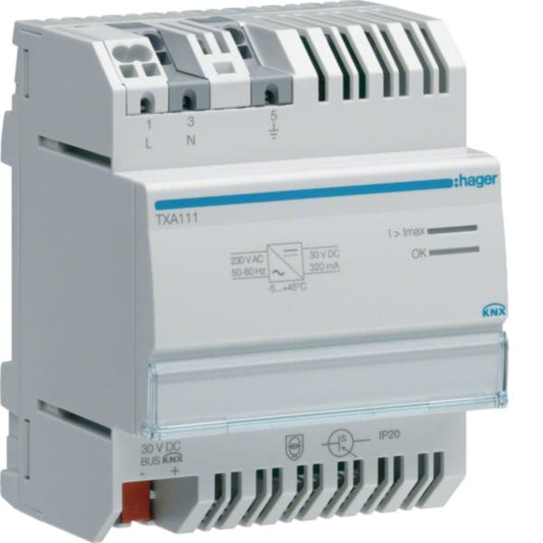 HAGER BOCCHIOTTI - Alimentatore 1 uscita 30V DC bus KNX 320mA 4M TXA111
