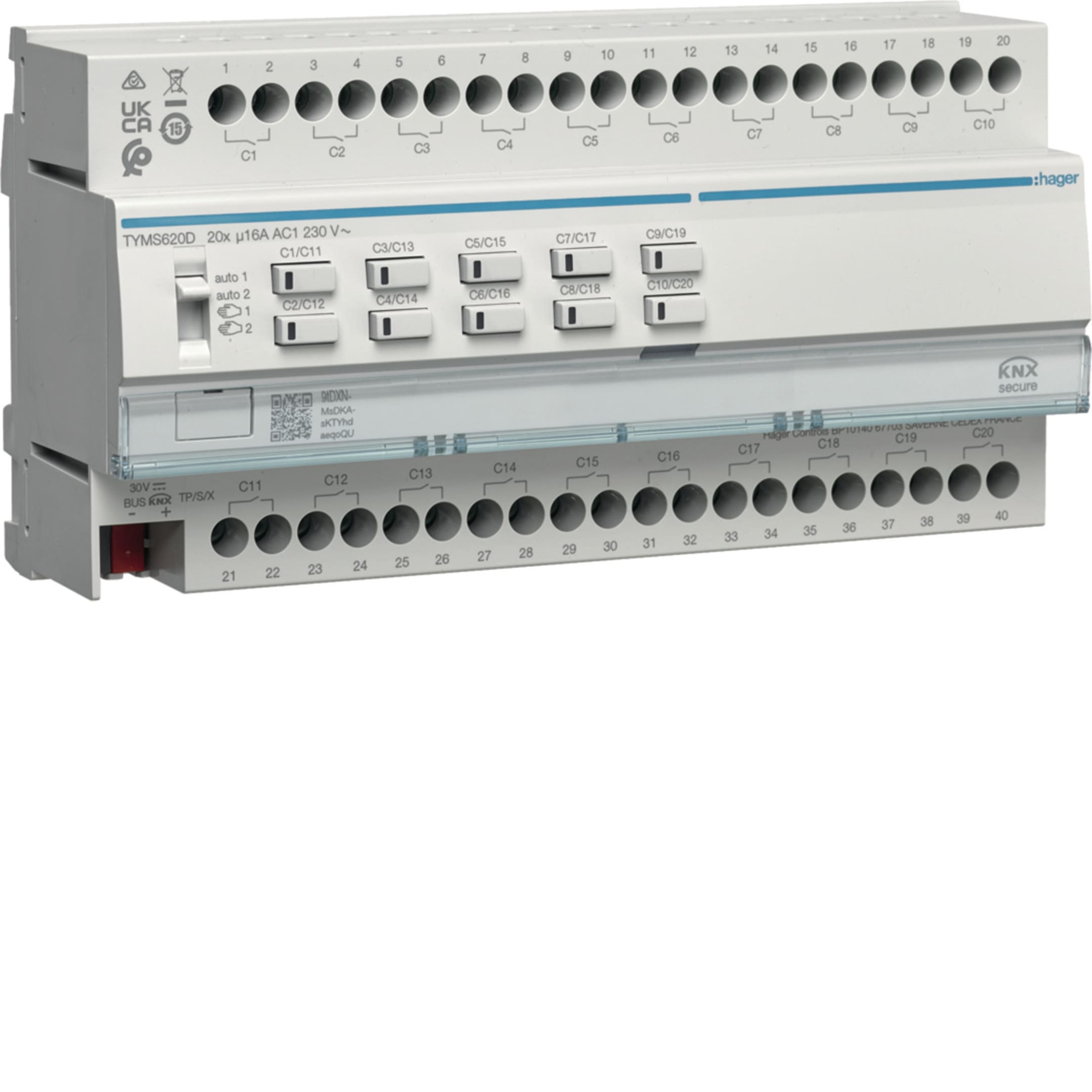 HAGER BOCCHIOTTI - Attuatore KNX Secure 20 uscite 16A 230V configurazione in easy e ETS 10M
