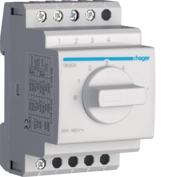 HAGER BOCCHIOTTI - Commutatore a gradini a 5 posizioni 20 A 400 V AC 3M SK604