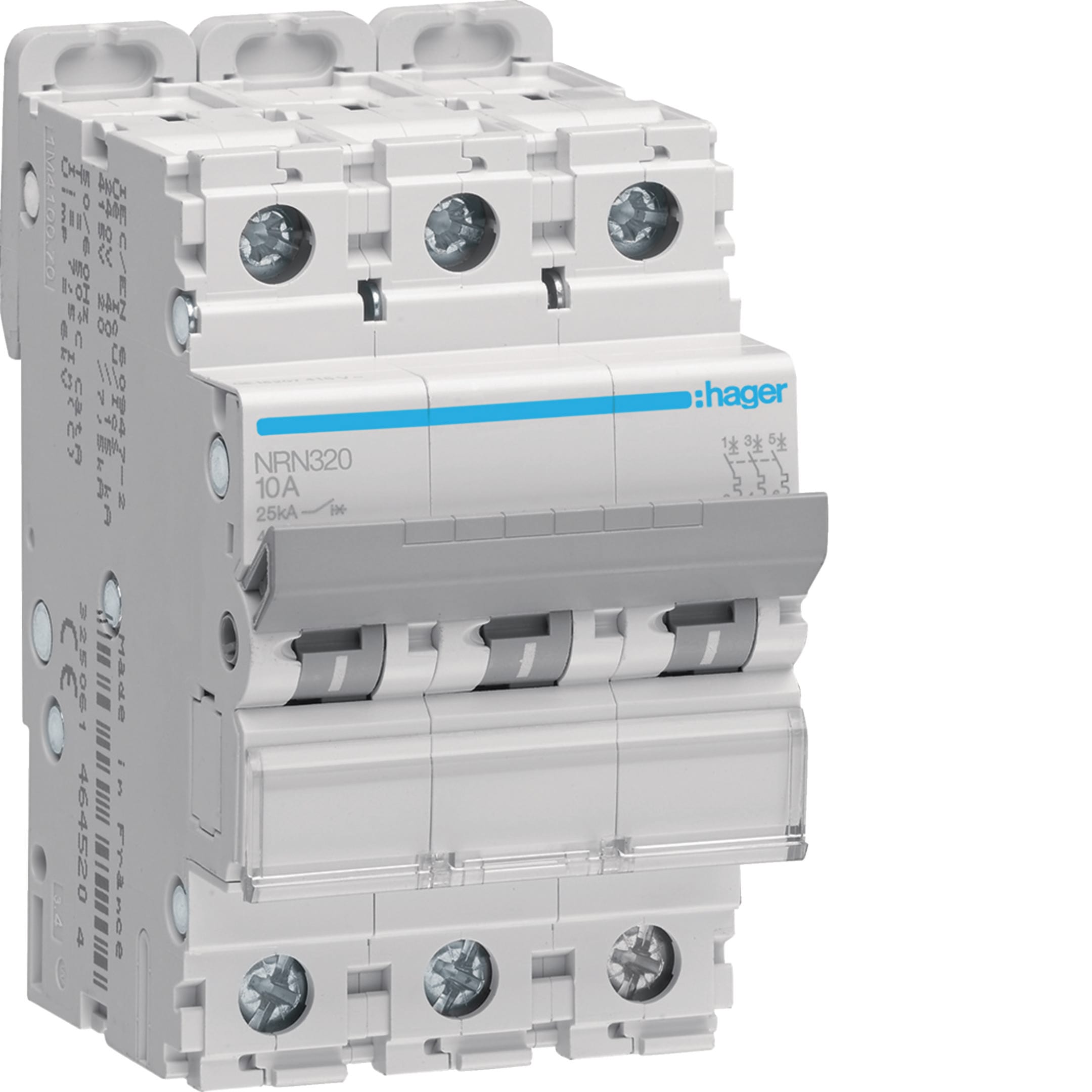 HAGER BOCCHIOTTI - Interruttore automatico magnetotermico 25kA 3P curva C 20A 3M