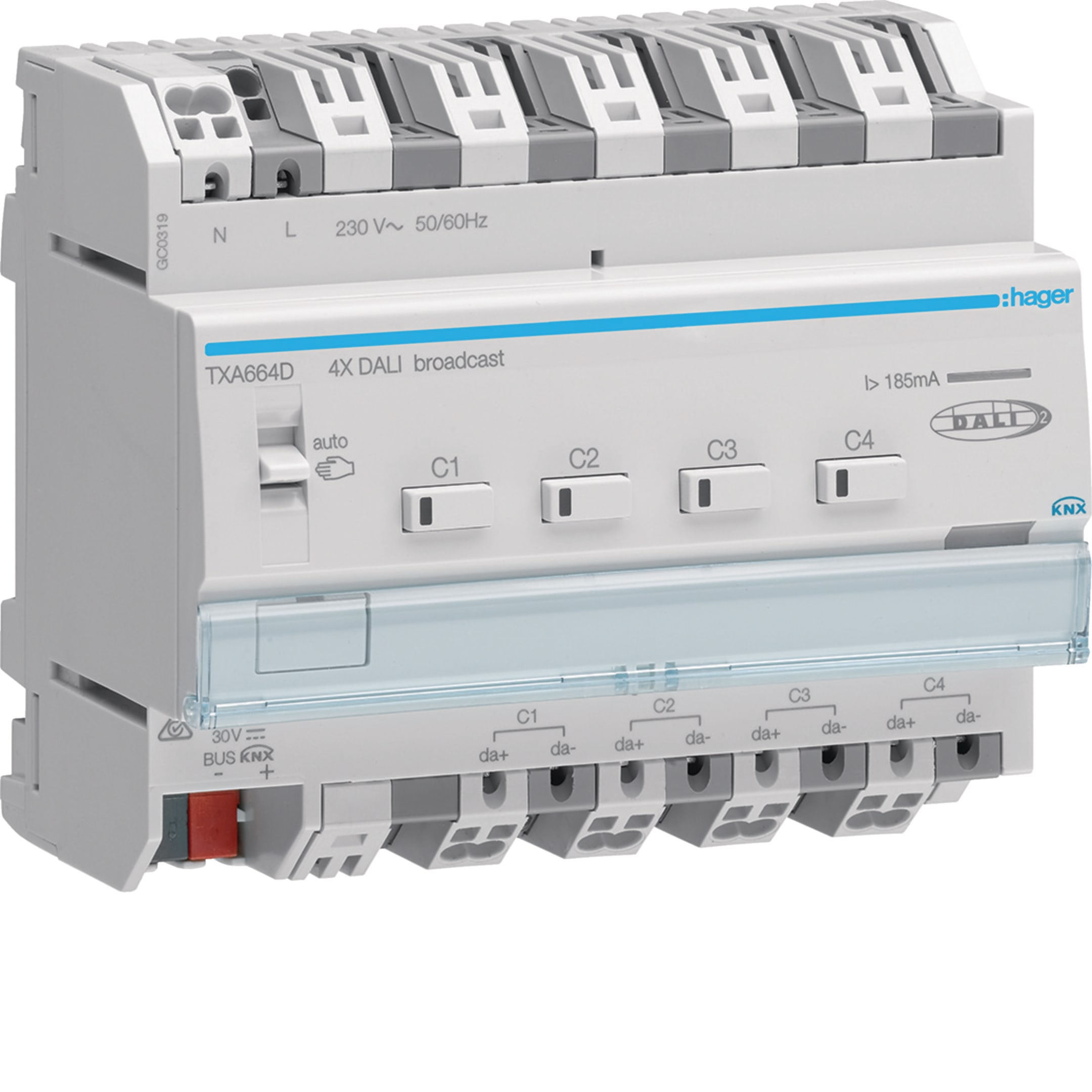 HAGER BOCCHIOTTI - Modulo KNX Dali2 4 uscite broadcast configurazione in easy e ETS 6M