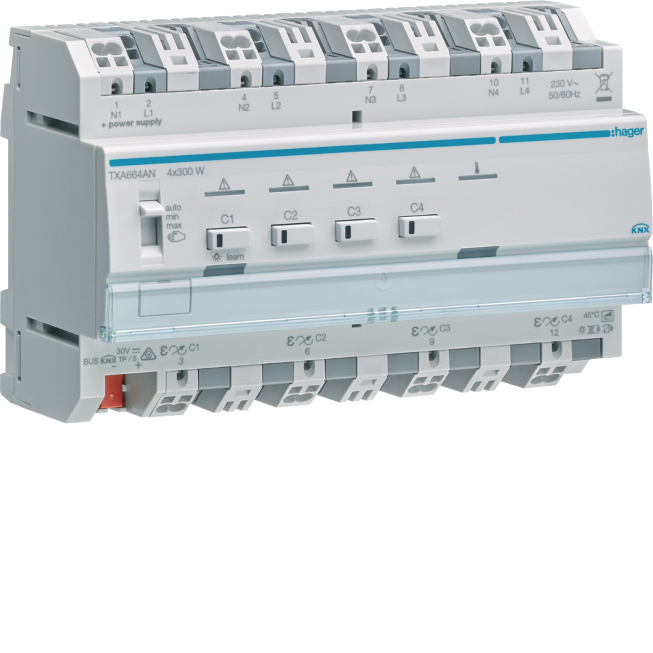 HAGER BOCCHIOTTI - Modulo KNX dimmer 4 uscite 300W combinabili 230V AC easy e ETS 8M