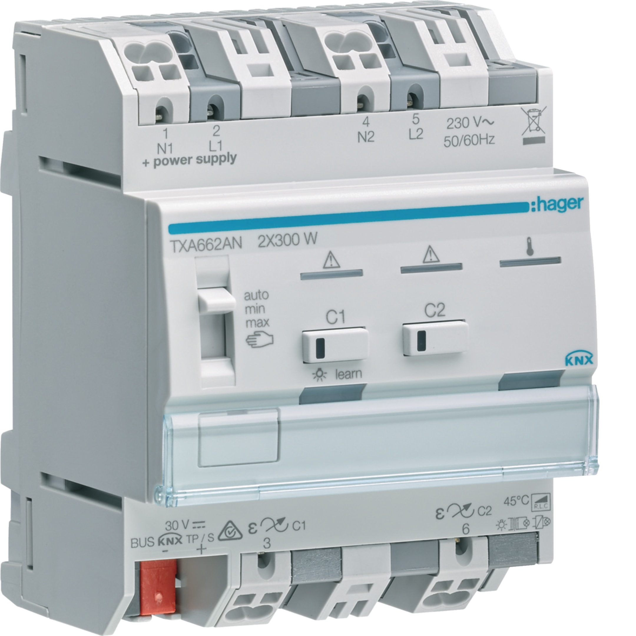 HAGER BOCCHIOTTI - Modulo KNX dimmer RLC 2 uscite 300W combinabili 230V AC via easy e ETS 4M