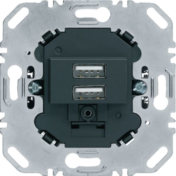 HAGER BOCCHIOTTI - Presa di ricarica USB doppia 230V 3A antracite, supporto angolare 260205