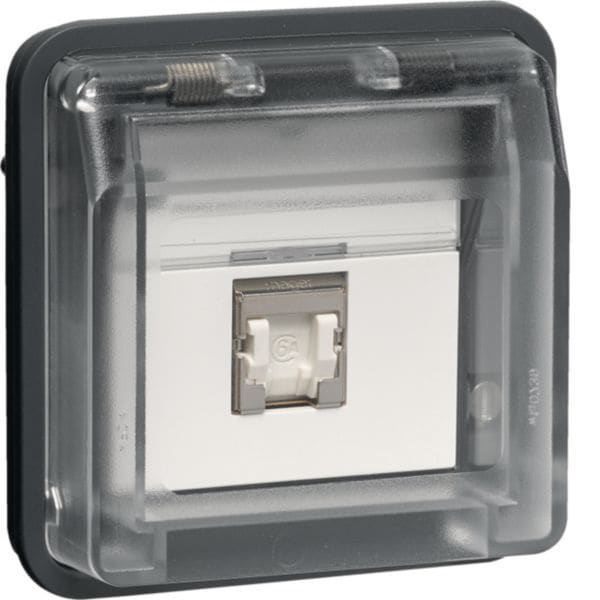 HAGER BOCCHIOTTI - Presa RJ univers. a 8 poli schermato con coperchio Cat.6 Serie W.1 grigio opac 14093515