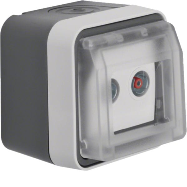HAGER BOCCHIOTTI - Presa TV doppia passante + coperch a parete Serie W.1 grigio/grigio chiaro opac 12033525