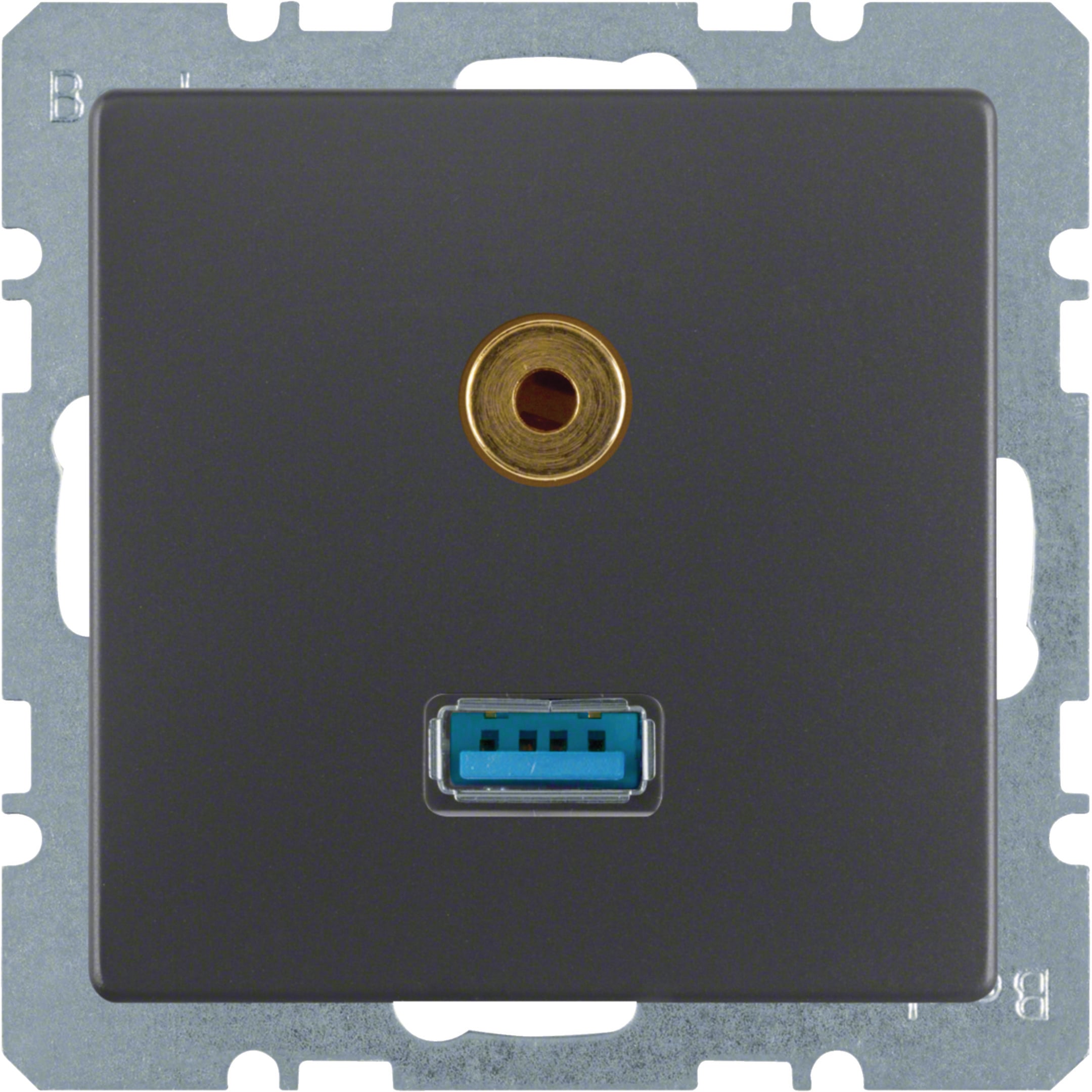 HAGER BOCCHIOTTI - Presa USB / 3,5 mm audio Berker Q.1/Q.3 antracite velluto, verniciato