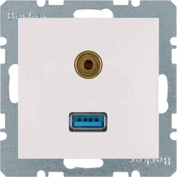 HAGER BOCCHIOTTI - Presa USB / 3,5 mm audio Berker S.1/B.3/B.7 bianco polare opaco