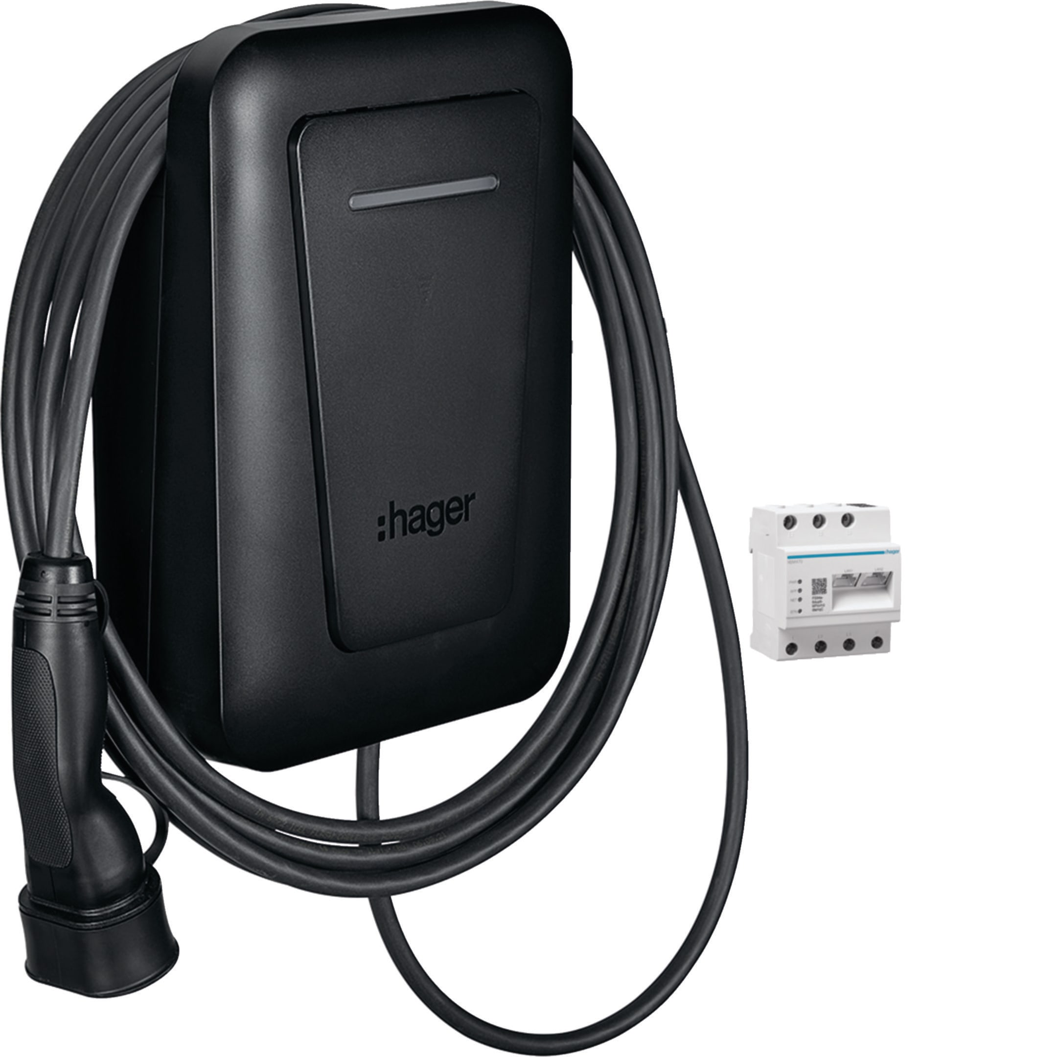 HAGER BOCCHIOTTI - Stazione di ricarica witty plus 1 cavo T2 6,5m 3P 22kW con RFID e server flow