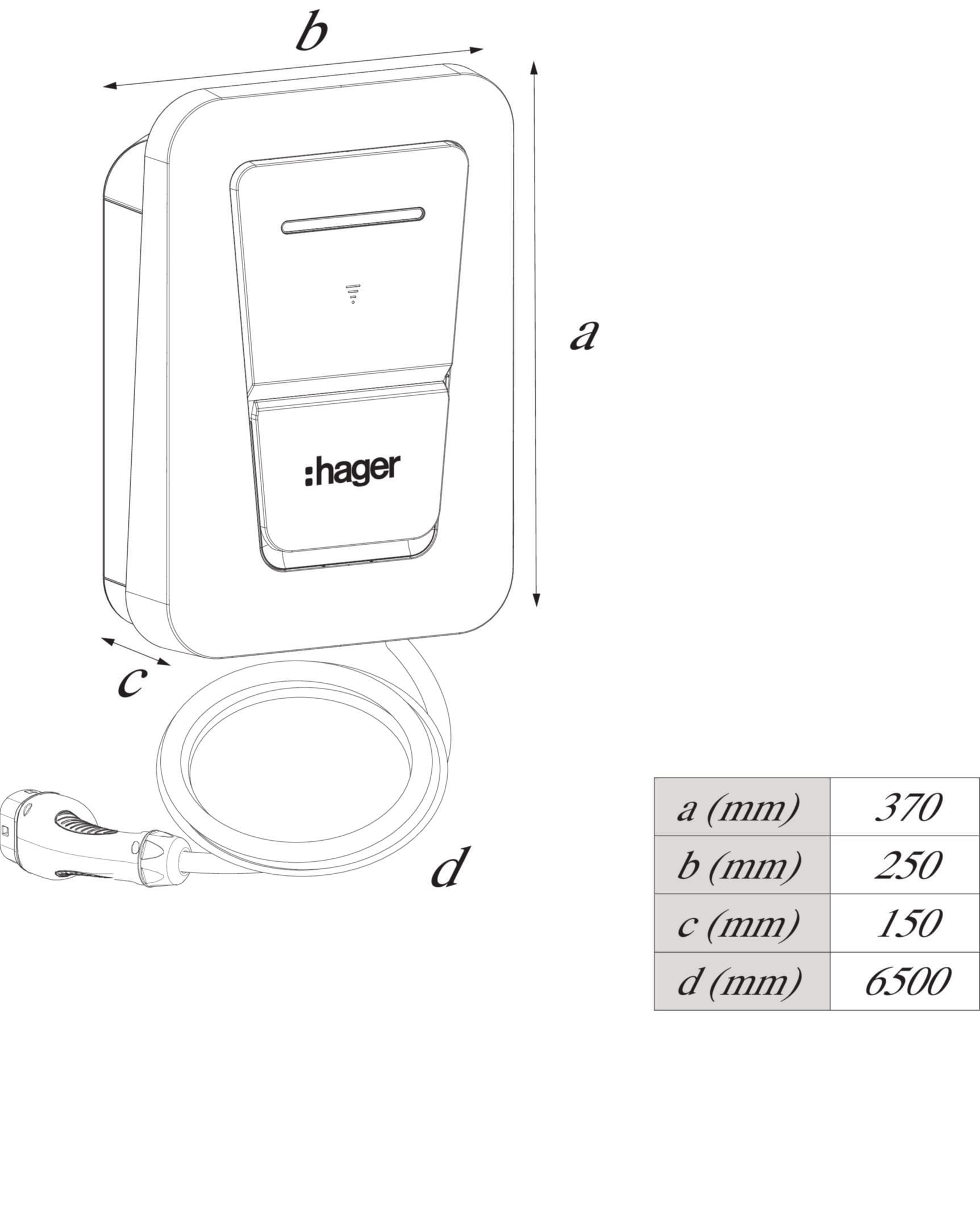 HAGER BOCCHIOTTI - Stazione di ricarica witty plus 1 cavo T2 6,5m 3P 22kW con RFID e server flow XVL122CFL
