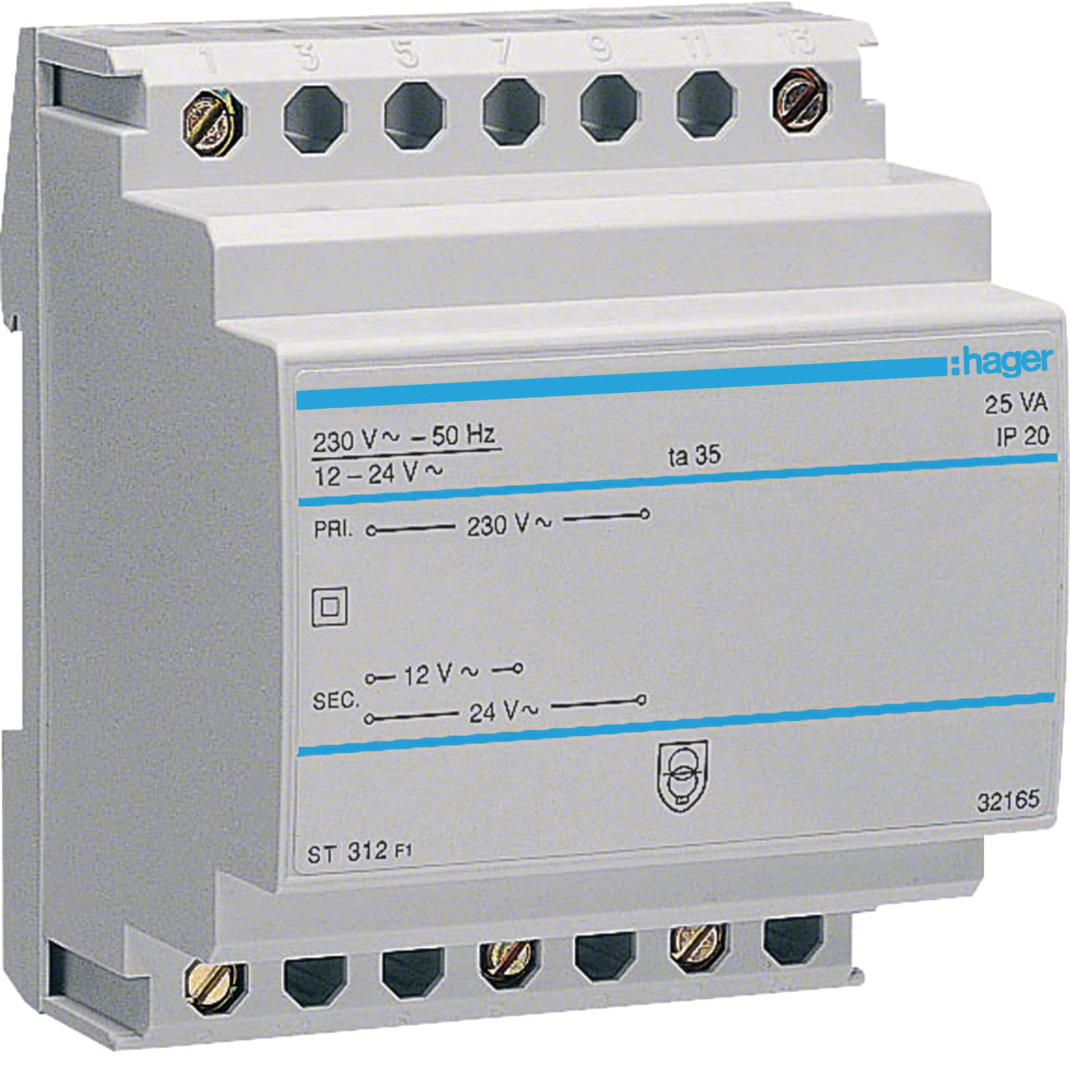 HAGER BOCCHIOTTI - Trasformatore di sicurezza 230 V - 12 - 24 V AC 25 VA 4 moduli DIN