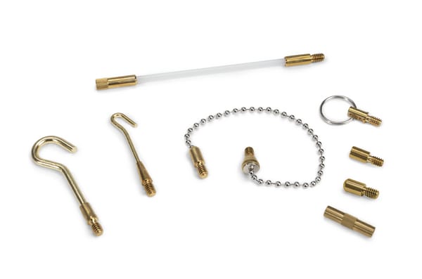 Kit di accessori: astina flessibile di 15 cm, raccordo, gancio piccolo, gancio grande, occhiello, anello, terminale arrotondato, terminale piatto, magnete e una catena. Cable Scout+ viene fornito con un'ampia varietà di accessori, ulteriori elementi possono essere acquistati separatamente. I Cable Grips sono progettati per agganciare in modo semplice e sicuro i tubi e i cavi alle astine. Basta aprire la maglia trecciata, spingere all'interno il cavo e lasciare andare, la maglia si contrae immediatamente e fissa stabilmente il cavo al passacavi.