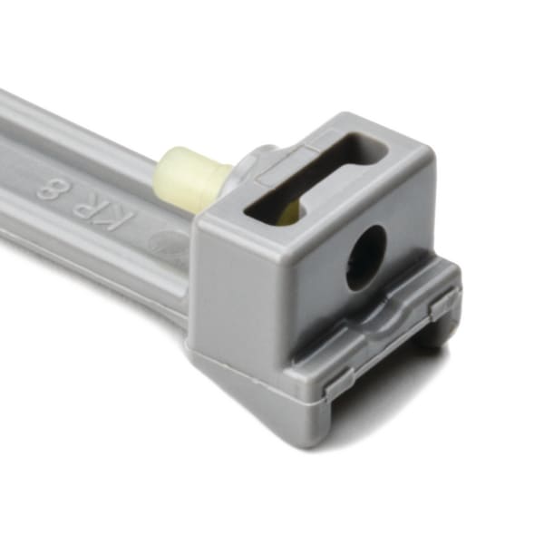 Fascetta senza dentellatura per evitare danni ai cavi. La fascetta è bloccata in posizione con un perno rinforzato in fibra di vetro. Fissaggio molto sicuro e resistente alle vibrazioni. Disponibili in vari materiali, colori e in quasi tutte le lunghezze. Le fascette in PA12 sono altamente resistenti agli agenti chimici, agli urti e ai raggi UV.. Le fascette KR fino a una lunghezza di 426 mm sono prodotte in un unico pezzo.. Per l'assemblaggio è necessario uno speciale utensile KR. Il particolare disegno delle fascette di cablaggio della serie KR le rende ideali al fissaggio delle cuffie sulle cremagliere dello sterzo, delle tubazioni dell'acqua e dei cavi di potenza nei locomotori, grazie anche all'elevata resistenza alle vibrazioni. La versione in bobina è molto flessibile e può essere tagliata a piacere. Sono disponibili teste separate per il fissaggio