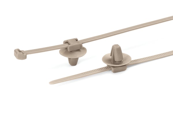 Fascetta 2-piece preassemblata con ancoraggio a freccia. Facile da installare, anche senza attrezzo. La testa della fascetta può essere riposizionata dopo la legatura. L'ancoraggio a freccia si inserisce facilmente. Il disco è in grado di controbilanciare le pressioni sulla fascetta e minimizza l‘ingresso di polvere, sporco e acqua. Vantaggi del PEEK: temperatura di esercizio da -55°C a +240°C. Ottima resistenza agli agenti chimici e alle radiazioni gamma. Le fascette con elemento di fissaggio P1SFT6,5 o P2SFT6,5 sono ideali quando il requisito di temperatura o resistenza chimica è molto elevato. Sono utilizzate per cablaggi nell'industria automobilistica.