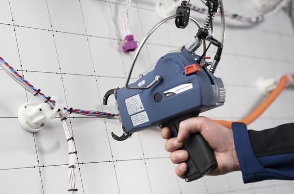 Per un utilizzo dinamico di Autotool System ATS. Permette di ridurre il peso dell'attrezzo grazie ad un sistema a molla di bilanciamento. Innovativo sistema di sospensione che permette la movimentazione libera su tutti gli assi. Include i fissaggi per la sospensione su sistemi a rotaia esistenti. Caricamento e guida del materiale di consumo facile e sicuro. Con alloggiamento per alimentatore ATS.