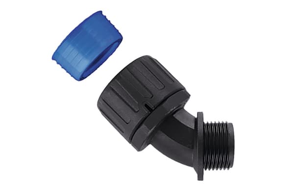 Formato da un unico elemento, ad inserimento rapido. Elevata resistenza agli strappi. Elevata resistenza a solventi ed olii. Zero alogeni, solfati e fosfati. Filetto maschio con controdado. Raccordo curvato a 45° con filetto maschio e guarnizione. IP66, IP67, IP68 e IP69K.