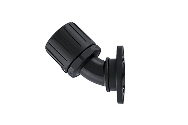 Formato da un unico elemento, ad inserimento rapido. Elevata resistenza agli strappi. Elevata resistenza a solventi ed olii. Zero alogeni, solfati e fosfati. Raccordo girevole a flangia curvato a 45°.